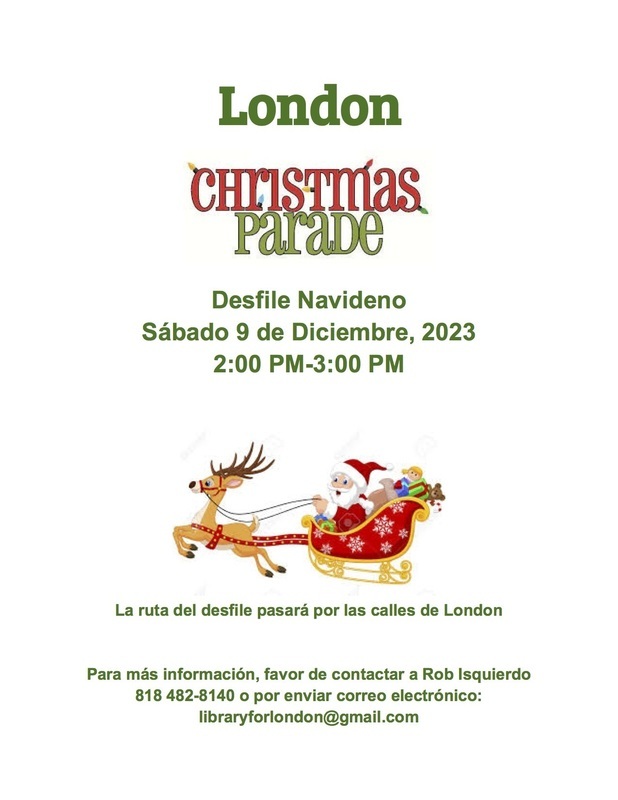 Please join us for a Christmas Parade throughout the streets in London. Parade will take place Saturday, December 9 from 2:00-3:00pm!