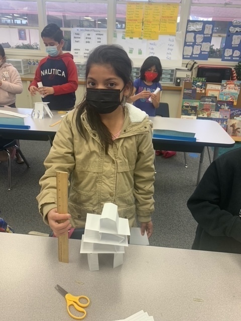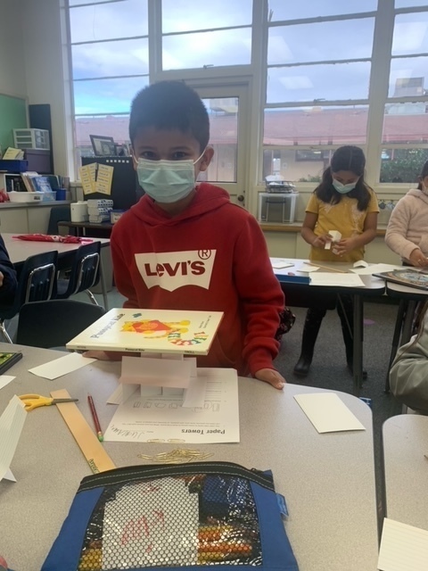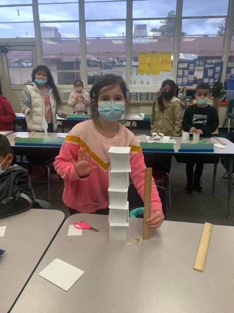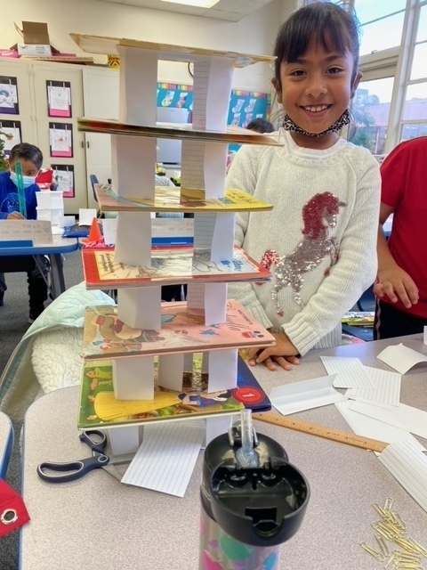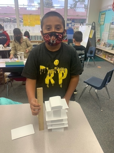 Cross curricular lessons that reinforce critical thinking are standard in second grade at KRUE. In this STEM lesson, students were given a ruler, 20 note cards, and 16 paperclips. The first challenge was to build the tallest tower possible. The second challenge was to build a structure strong enough to hold a hard bound book. Great Job Pioneers!